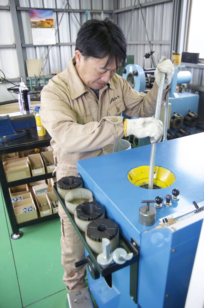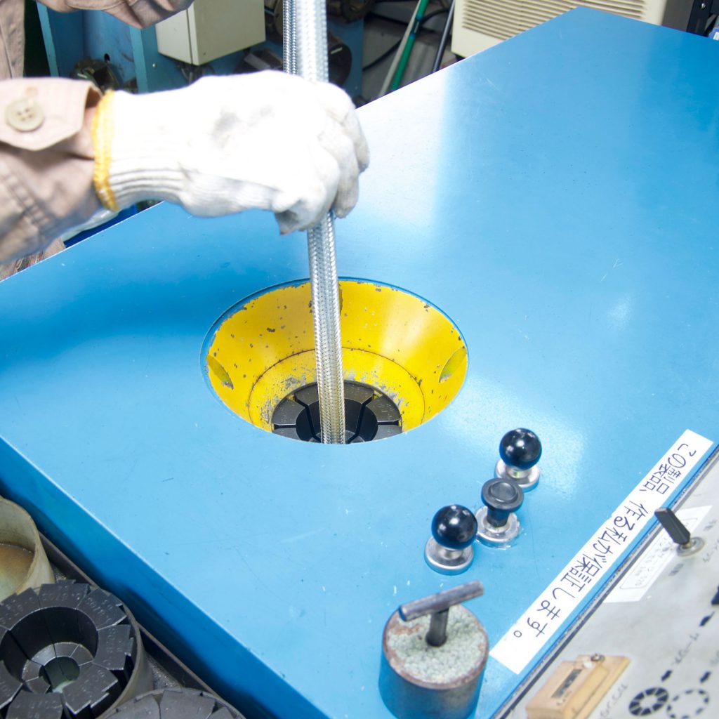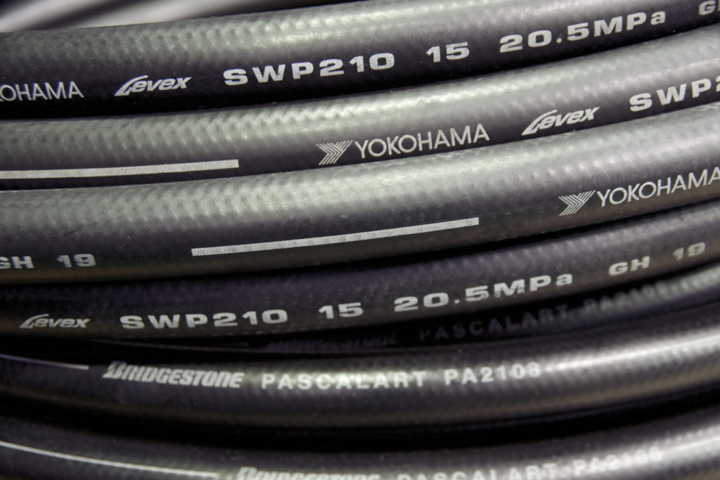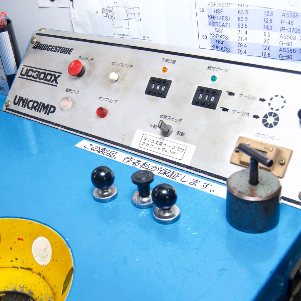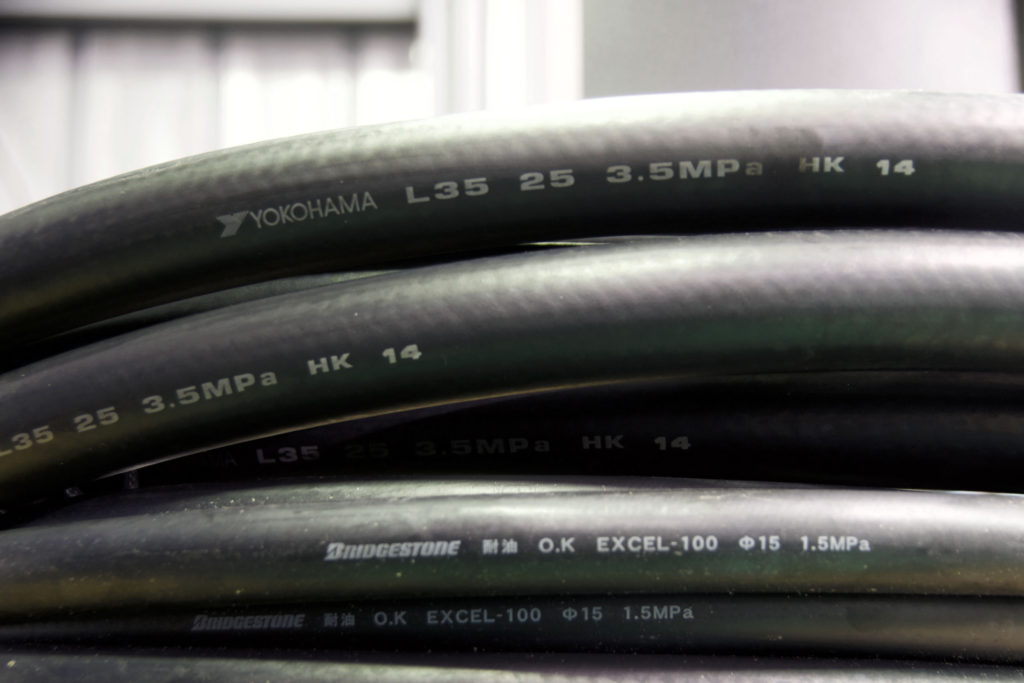 油圧ホースと一口に言っても、機械の種類はもちろんのこと、使用部分や役割によって必要な太さや構成、長さが様々に異なります。また、末端の接続部分となる継手部分の制作はホースの製造者ごとに独自の規格が存在し、指定の製作用機械と正しい設定のもとに作業を行うことが求められます。