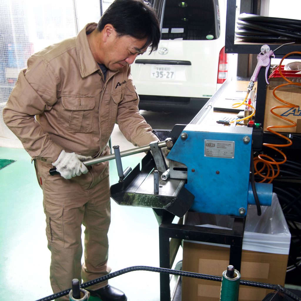 アラテックが県内初のサービスとして実施しているのがホース製作設備を備えた専用車両による出張製作サービスです。